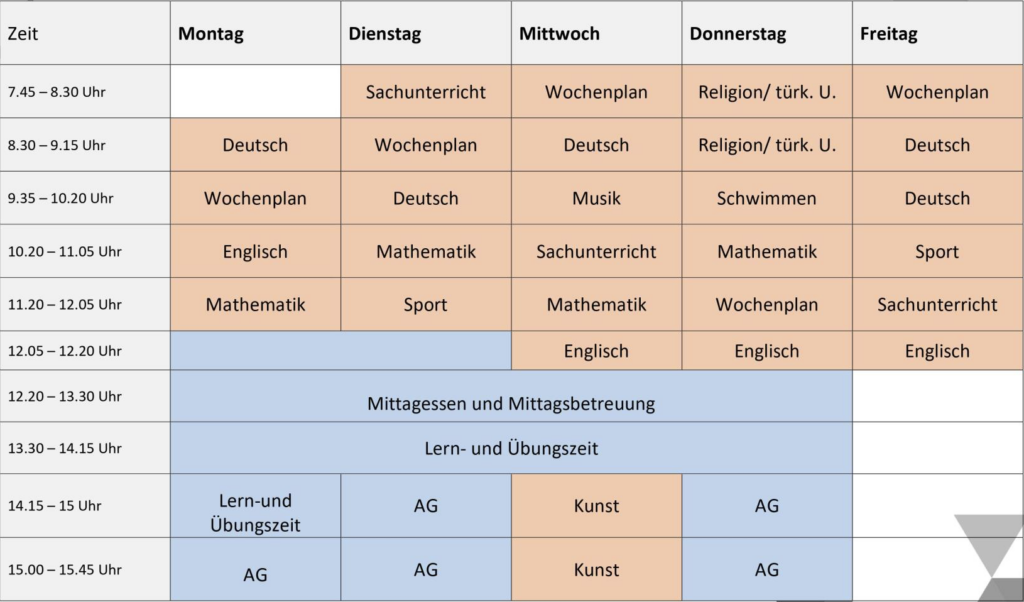 So sieht der Stundenplan eines Ganztageskindes aus:
