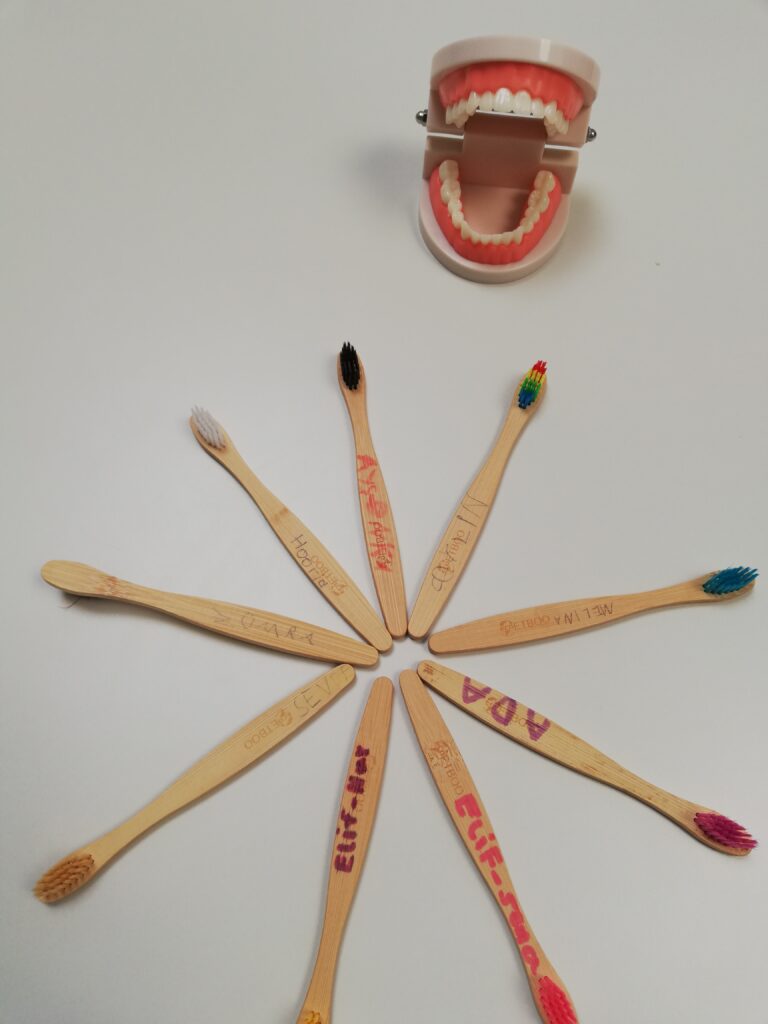 Neun Schülerinnen der Klassen 1 und 2 haben sich für die AG „Tolle Zähne Kids“ entschieden. Wir putzen unsere Zähne, das Lied „Hacki Backi“ dauert drei Minuten und begleitet uns dabei. Wußtet Ihr eigentlich, dass Elefanten sechs Mal im Leben einen Zahnwechsel haben? Man kann seine Zähne auch gut mit einem Faden pflegen, und vor einem Zahnarzt muß niemand Angst haben. Wir haben also viel Spaß und lernen interessante Dinge.